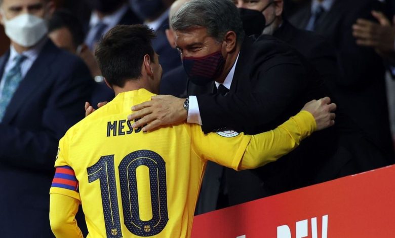 وعند سؤاله عن رحيل ميسي، قال لابورتا: “لا أشعر بالندم على ذلك. برشلونة يأتي أولاً، ولم يكن من المفترض أن يحدث هذا. ومع ذلك، إذا كان التكريم سيفيد، فهو سيكون رائعاً”.