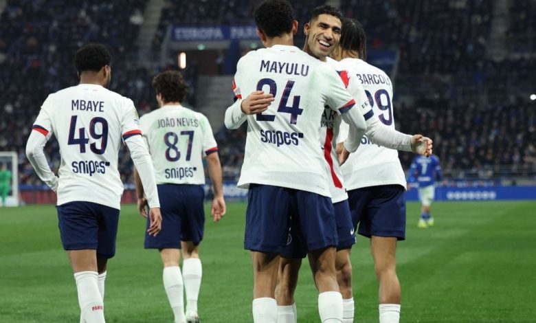 باريس سان جيرمان يتفوق على ستراسبورغ في مباراة مثيرة مع طرد أشرف حكيمي